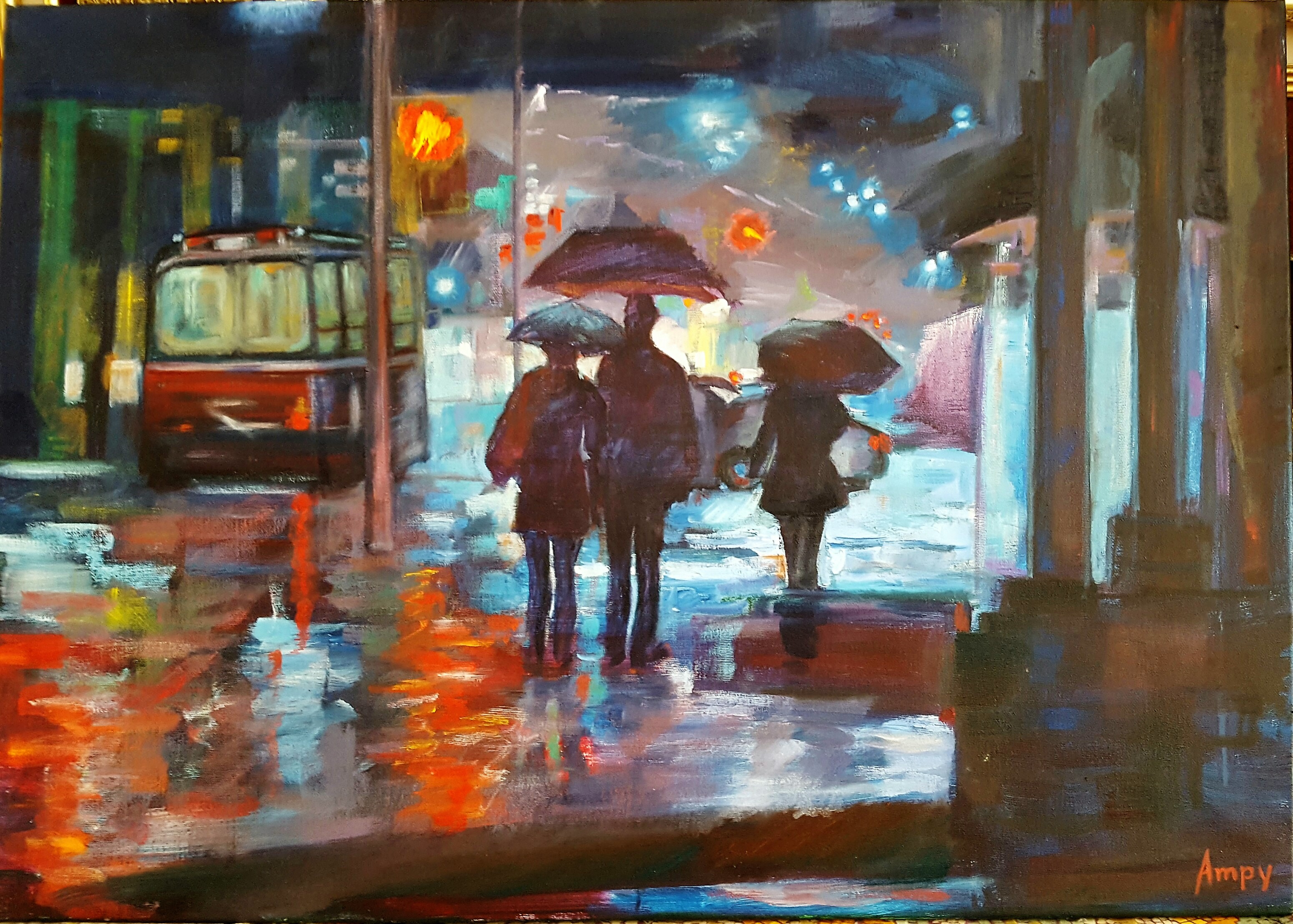Noche de lluvia 7 mayo, 2017Máxima resolución (3101 × 2217) ADQUIRIDO Año : 2017 Técnica : Óleo sobre lienzo Dimensiones : 92 cm (ancho) x 65,5 cm (alto)